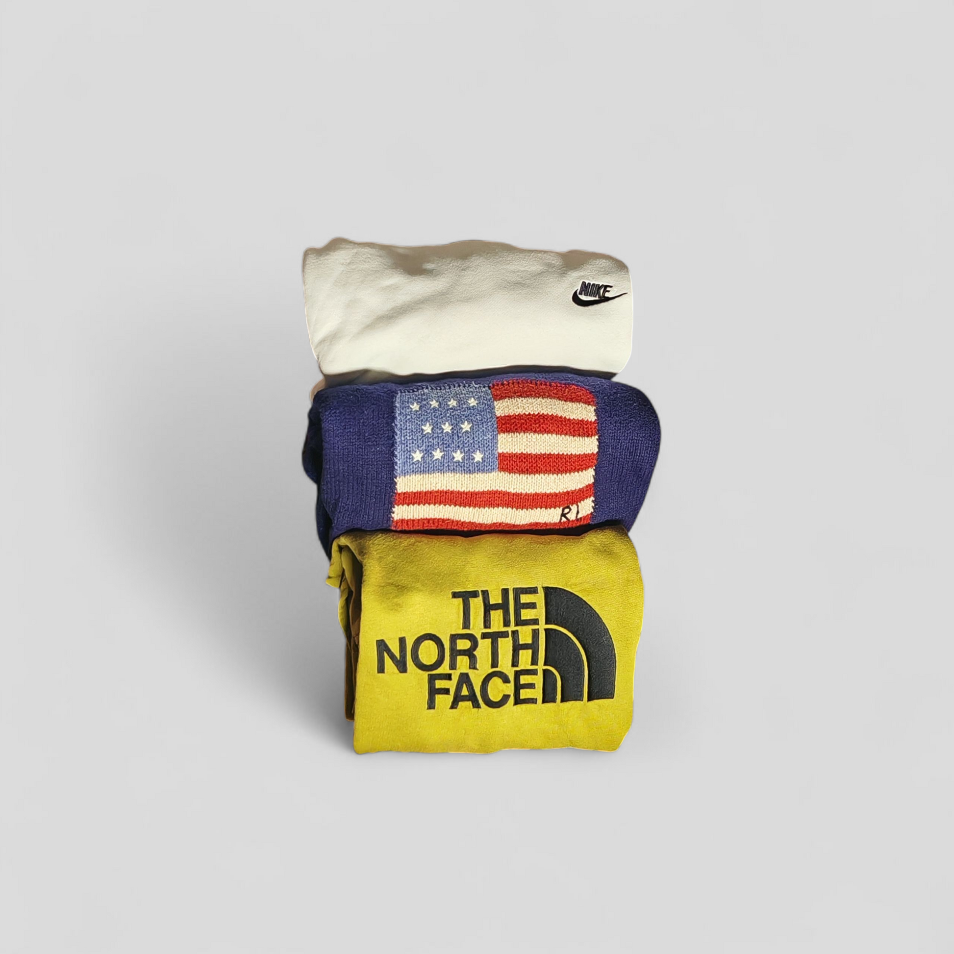 Molti ci chiedono quanti capi contengono una scatola da 1 kg: la risposta è dalle 2 alle 3 felpe , la seconda del peso e della manifattura di ogni singolo articolo. In questo modo l'acquisto non si basa sulla fortuna, ma su un valore concreto e misurabile. All'interno troverai solo brand iconici che hanno fatto la storia, da Nike a Ralph Lauren, pronti a diventare un investimento per il tuo guardaroba o per il tuo business.