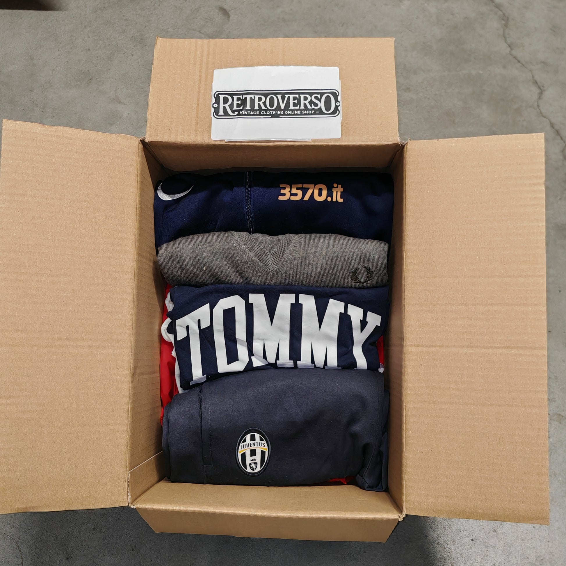 Per gli esploratori di stile che amano la sorpresa e la varietà, nasce Archivio Misto, la nostra box più eclettica e completa. Questa collezione rappresenta l'essenza di Retroverso: un'accurata selezione dei migliori capi vintage e second-hand che spaziano tra stili e categorie, unendo i brand più iconici in un unico, sorprendente lotto.