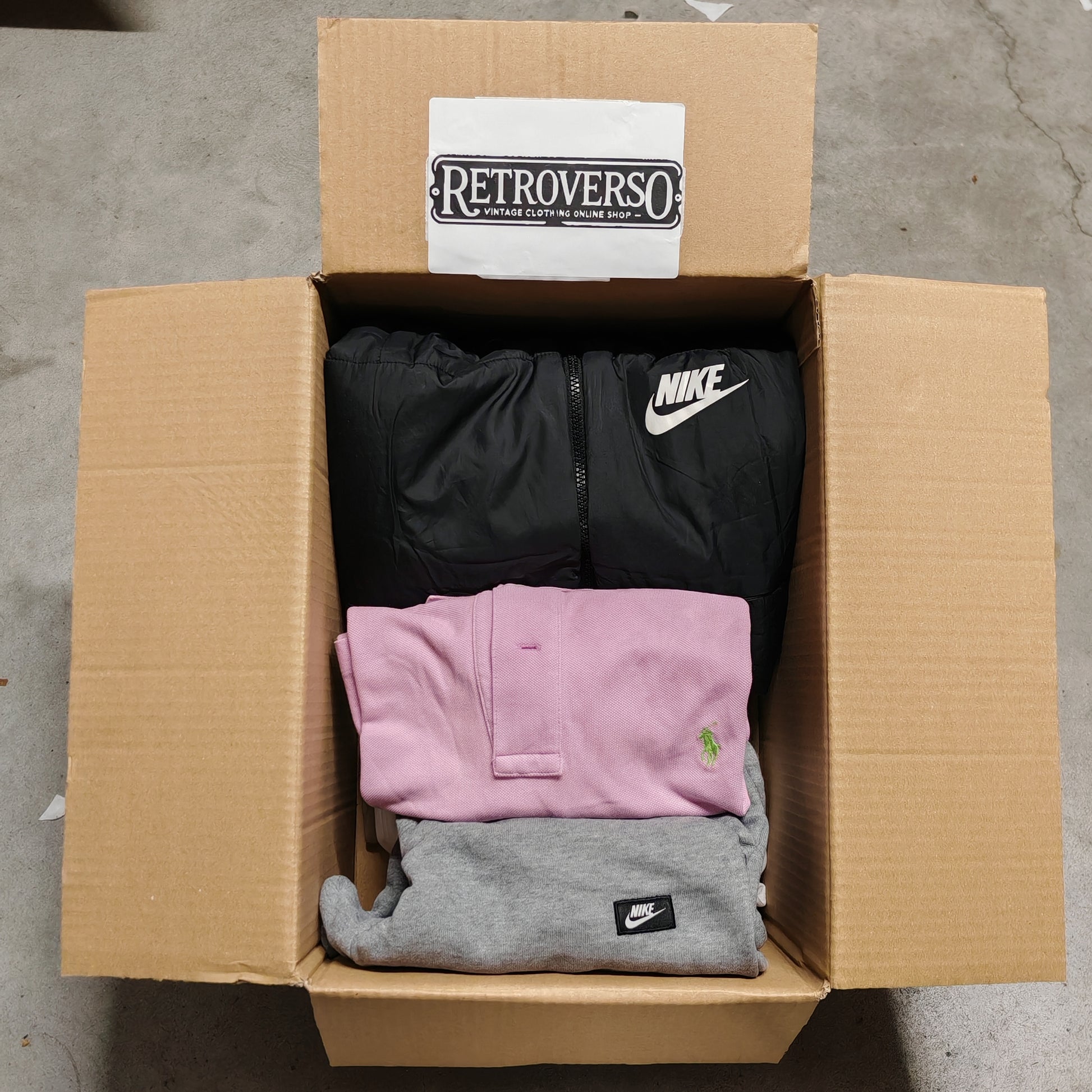 Come sempre, la nostra promessa è la trasparenza: vendiamo al chilo per garantirti il massimo valore. In una box da 1 kg di questo mix troverai dai 3 ai 5 articoli, a seconda del peso specifico di ogni capo. All'interno potrai scoprire un assortimento che include pantaloni, camicie, felpe, T-shirt e Polo.